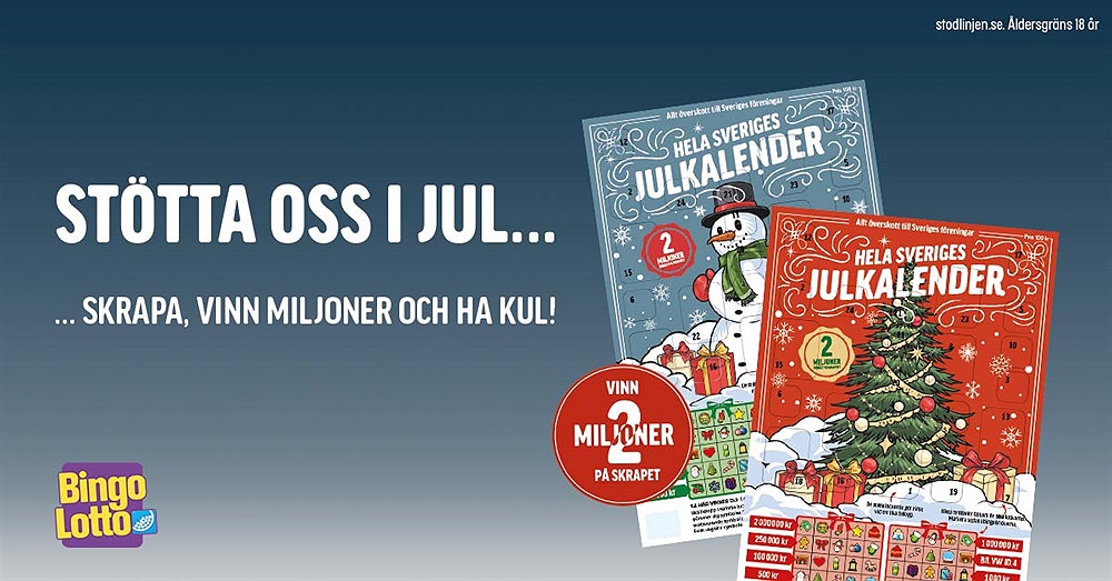 Skrapa en lucka varje dag från 1 december fram till julafton! Bakom varje lucka kan du skrapa fram vinster på upp till 2 miljoner kronor. Skraplotten fungerar som en traditionell adventskalender, där varje dag ger dig en ny chans till överraskningar och vinster. Vem vet, kanske är det du som skrapar fram den stora vinsten!